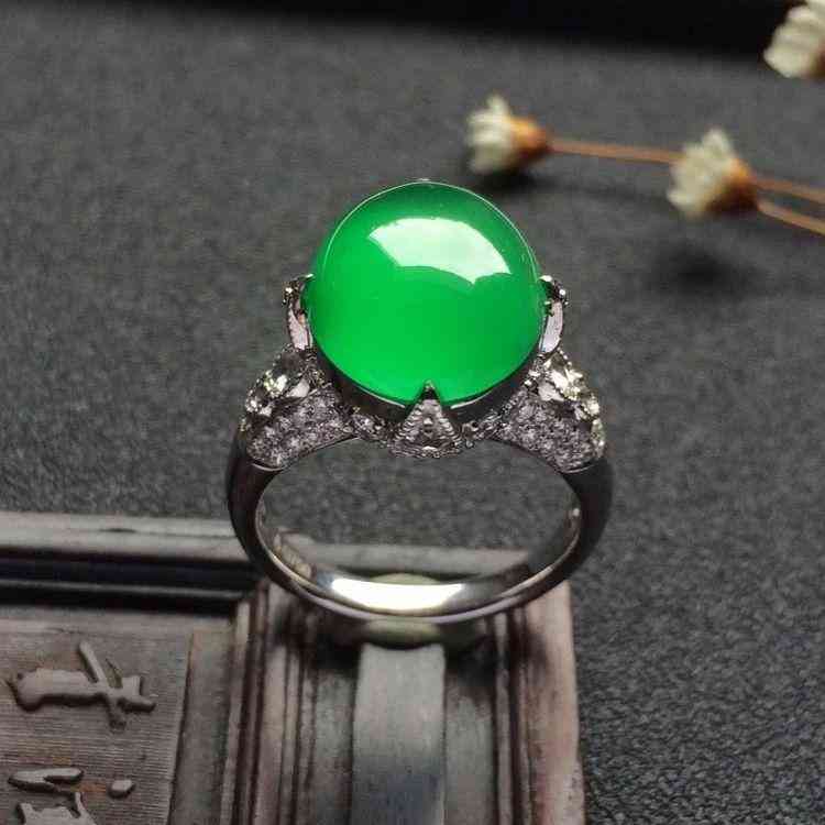 精美的翡翠鑲嵌工藝能凸顯出翡翠的魅力,金屬的質(zhì)地和諧的和翡翠融合在一起,與翡翠的翠色交相呼應(yīng),凸顯出一種時尚的氣息和魅力,金屬本身也對翡翠形成保護的作用。