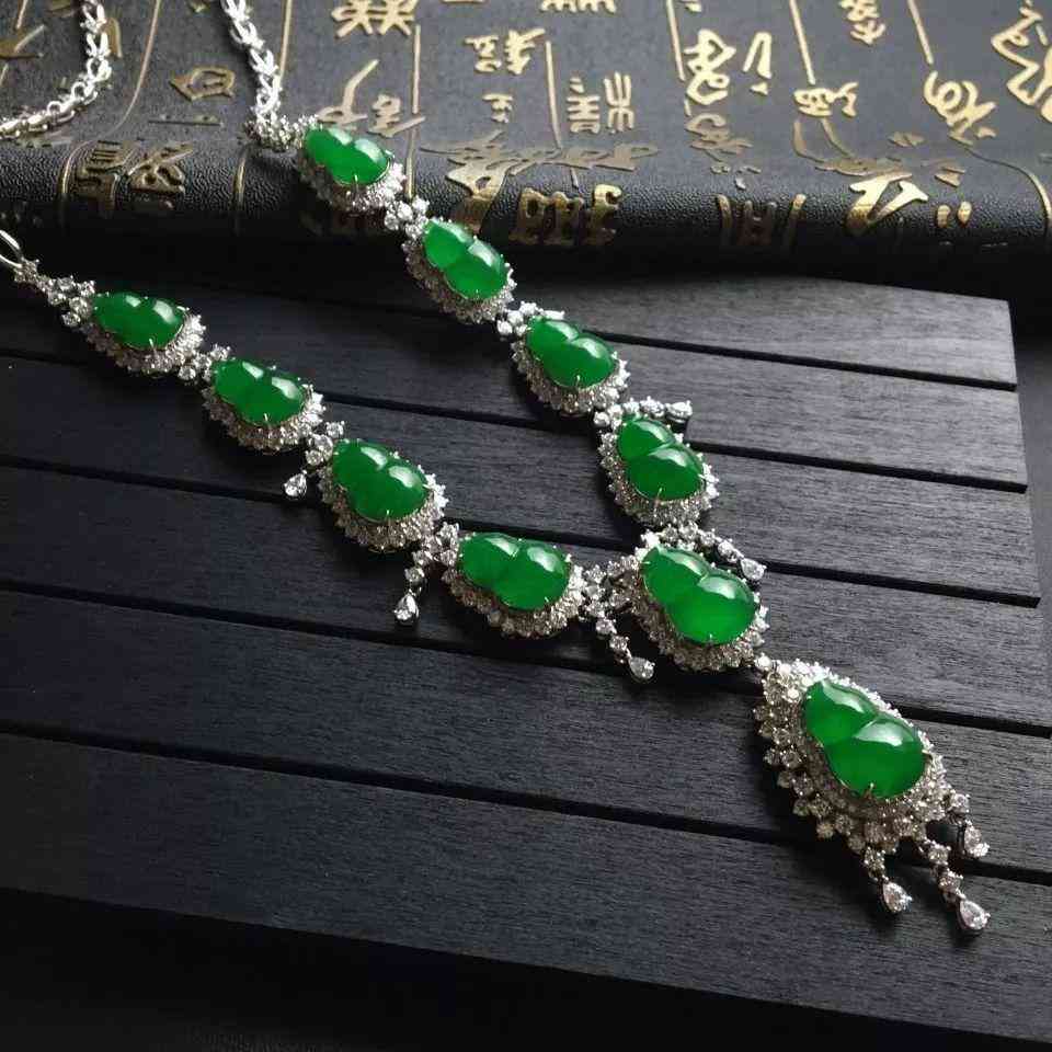 冰種正陽綠鑲白金鉆石葫蘆項鏈
