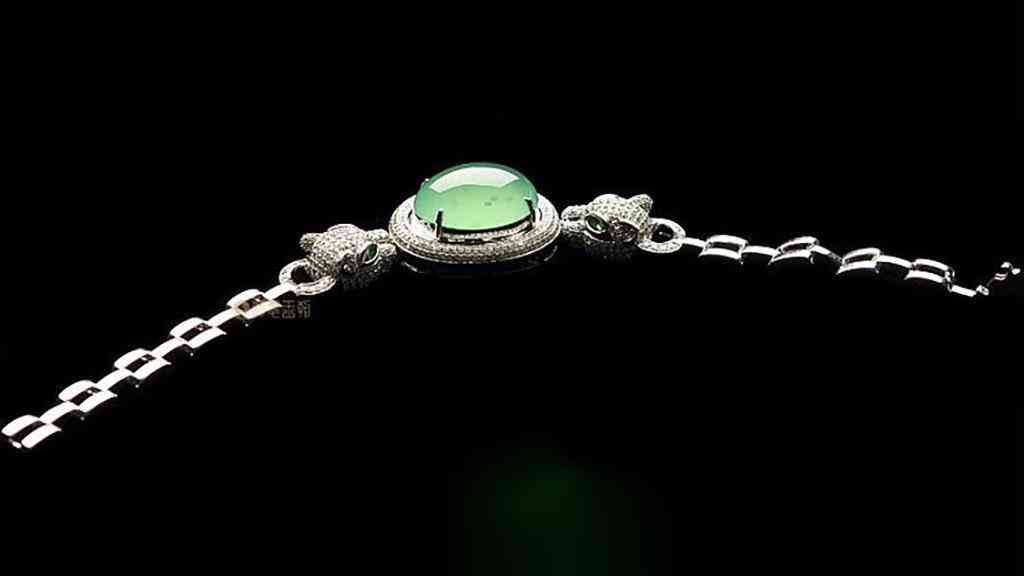 木那料冰玻種綠晴水鑲白金鉆石豹頭手鏈