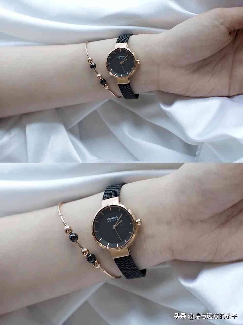 另外,除了單獨(dú)與黃金手飾搭配以外,小仙女們還可以嘗試加入其他材質(zhì)的手腕飾品,比如手繩等等,不同材質(zhì)風(fēng)格的混搭碰撞,更突顯獨(dú)具一格的時(shí)尚品味的同時(shí),也能讓比較普通或者大眾化的手表款式