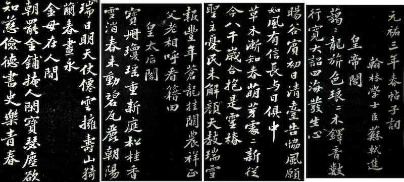 從蘇軾《洞庭春色賦》和《春帖子詞》的對(duì)比,可以發(fā)掘諸多令人興味盎然的亮點(diǎn)。后世追慕蘇軾者,比比皆是。有模仿其書法的,與膜拜其詩(shī)文的,更主要的則著眼于蘇子隨緣達(dá)觀的為人處世方式。