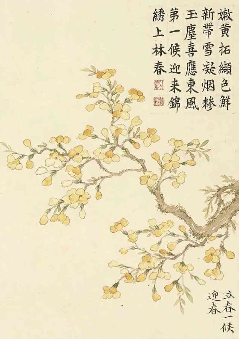 清 董誥 《二十四番花信風(fēng)圖》之立春一候迎春
