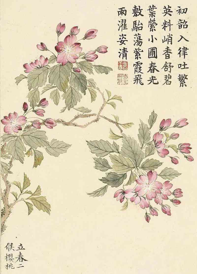 清 董誥 《二十四番花信風(fēng)圖》之立春二候櫻桃