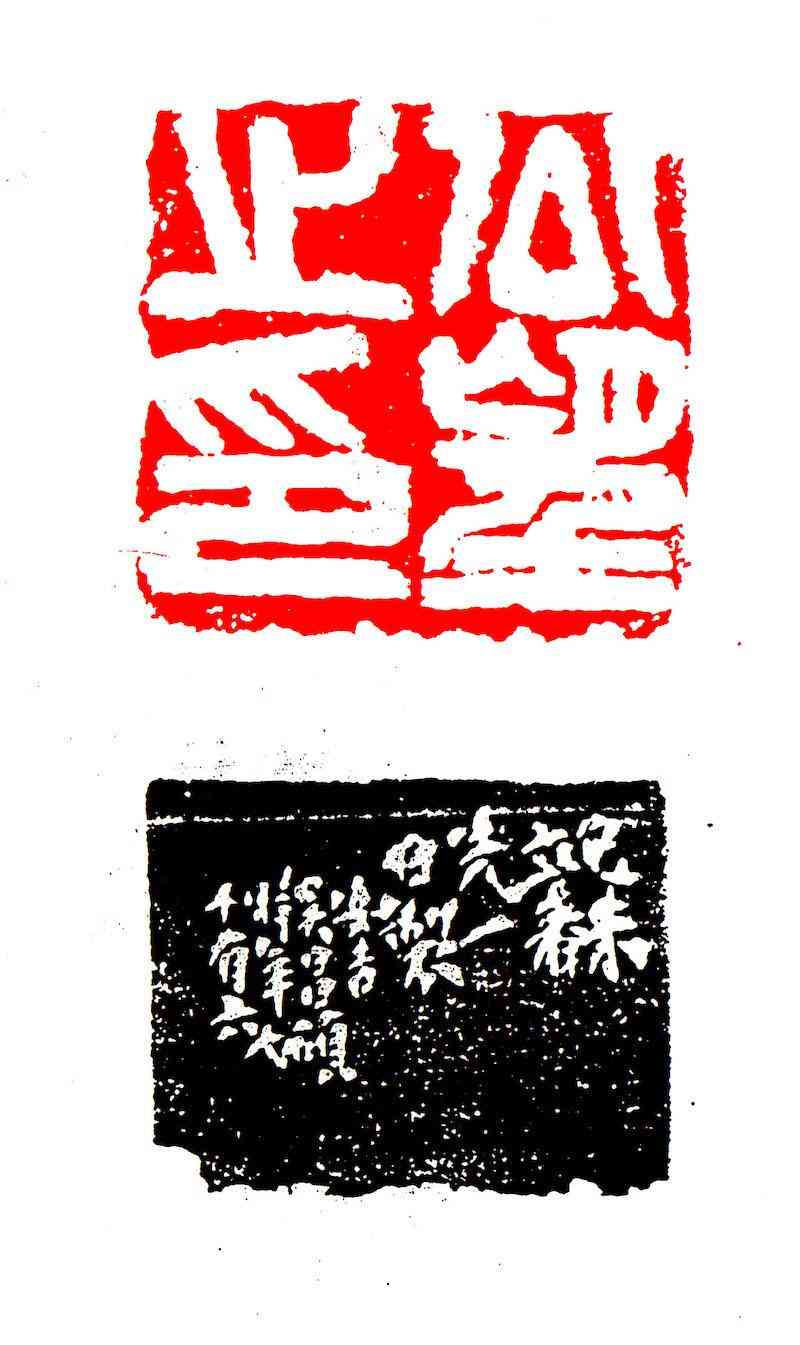 吳昌碩所刻“公望之印”款字署“己未立春”,時(shí)1919年,已經(jīng)是76歲高齡,卻寶刀不老。印面文字與個(gè)人篆書成熟度完全統(tǒng)一。文字布局自然而然,平中見(jiàn)奇,形殘神全?!爸弊止P畫的伸展錯(cuò)落有致,“印”字的“爪”部斜放,一下子讓整個(gè)印面有了動(dòng)態(tài)感。吳昌碩不愧為經(jīng)營(yíng)朱白對(duì)比的一等一高手。