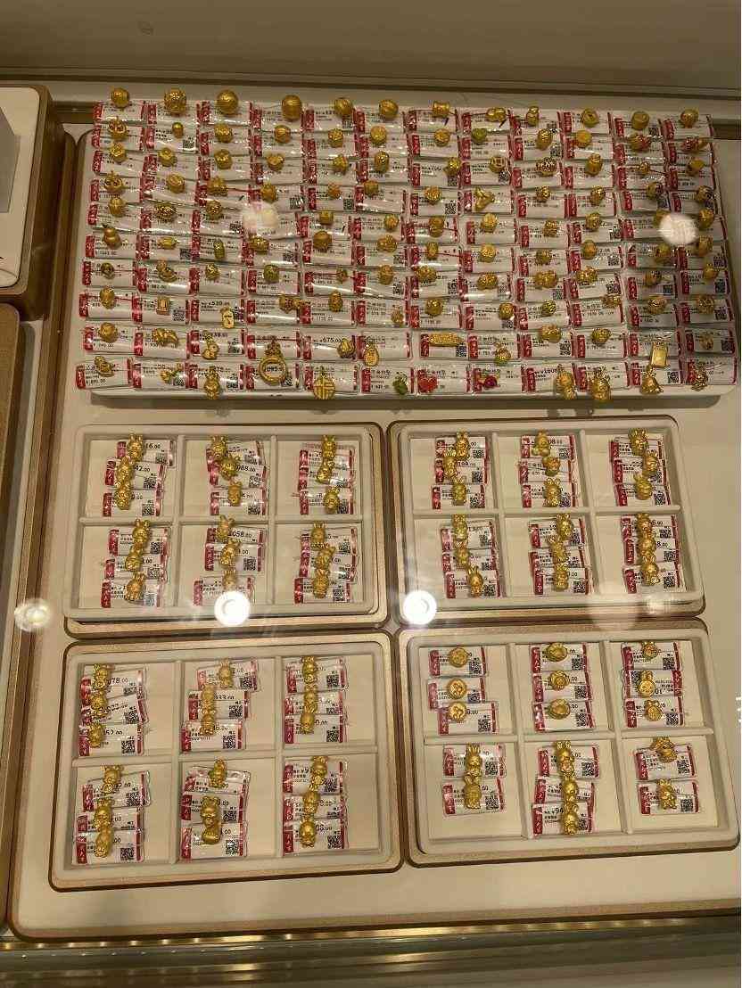 品牌金店展柜內(nèi)受年輕人喜愛的小克數(shù)千足金飾品 攝影/貝殼財經(jīng)記者 羅東駿。