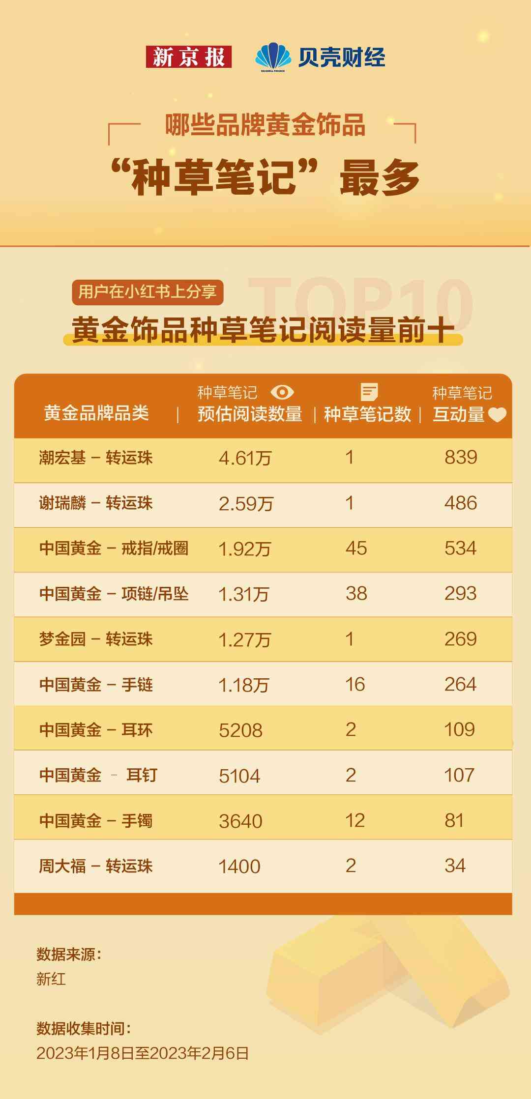 年輕人偏愛社交平臺“種草”( 專門給別人推薦好貨的行為),也稱為黃金珠寶品牌的“流量密碼”,一些黃金珠寶品牌的單品經(jīng)過用戶自發(fā)的二次傳播成為爆款,吸引了更多消費者。一位品牌金店的售貨員告訴貝殼財經(jīng)記者,該品牌發(fā)售的一款黃金飾品就在小紅書上經(jīng)過客戶多次分享成為爆款,銷量激增。