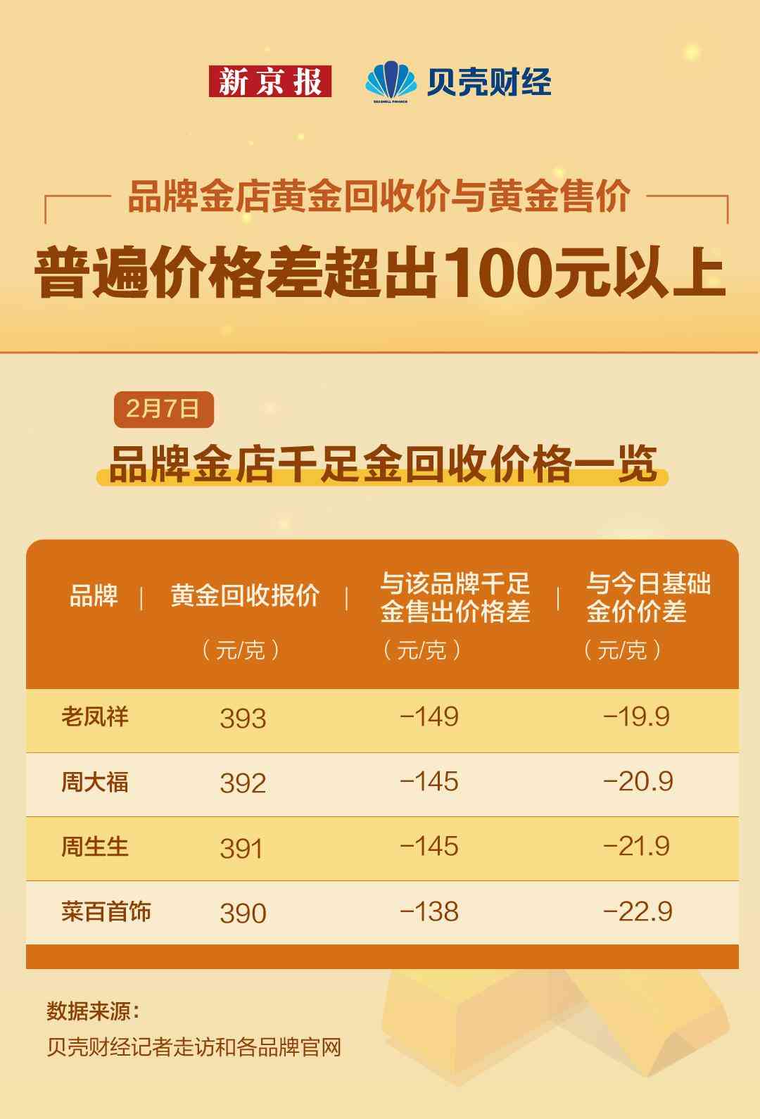 買金容易賣金難,回購黃金的過程中也會存在一定的交易成本。貝殼財經(jīng)記者梳理品牌金店千足金回收價格發(fā)現(xiàn),品牌金店的千足金每克售價比上海黃金交易所的黃金掛牌實時價要上浮20%-30%,而黃金回收報價則比上海黃金交易所的黃金掛牌實時價低20元左右。