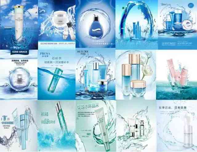 作為護(hù)膚品類的基本功效,補(bǔ)水、保濕幾乎是護(hù)膚品牌的標(biāo)配,在海報(bào)中加點(diǎn)水,襯托、環(huán)繞……是基本的“用水”規(guī)律。