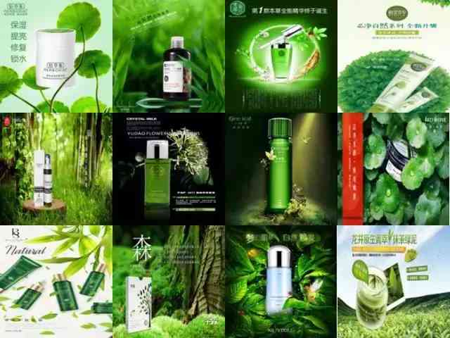 這些綠意盎然的化妝品海報(bào),想突出的是:“我”添加了大自然里的植物成分,“我”天然、“我”安全。