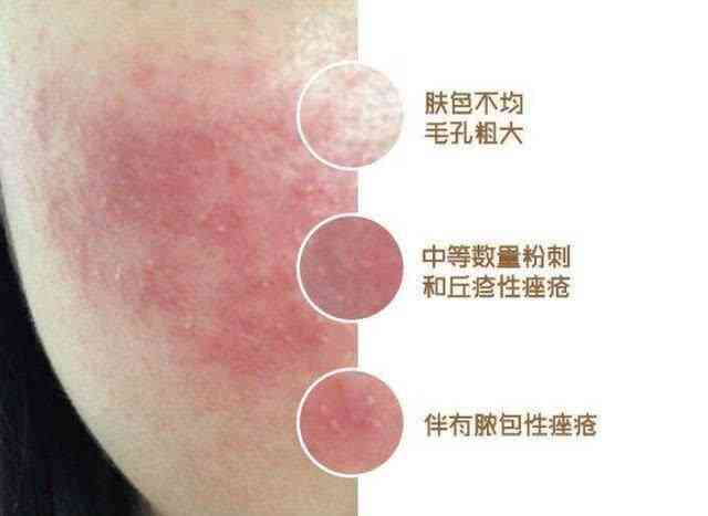 【激素性皮炎】發(fā)病時(shí)會(huì)感覺瘙癢、灼熱、疼痛、干燥、脫屑、緊繃感。面部皮膚出現(xiàn)潮紅,反復(fù)發(fā)生紅斑、丘疹、皮膚萎縮變薄、毛細(xì)血管擴(kuò)張,痤瘡泛發(fā),酒渣鼻樣改變,停用激素治療后皮損反復(fù)或加重,再次使用后癥狀緩解。