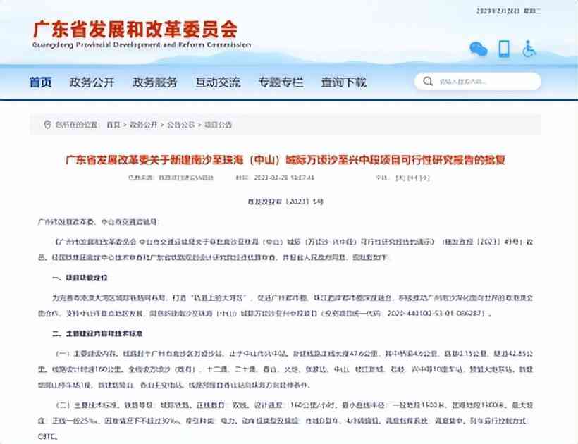 就在前兩天,廣東省發(fā)布了《關(guān)于新建南沙至珠海(中山)城際萬頃沙至興中段項(xiàng)目可行性研究報告的批復(fù)》。
