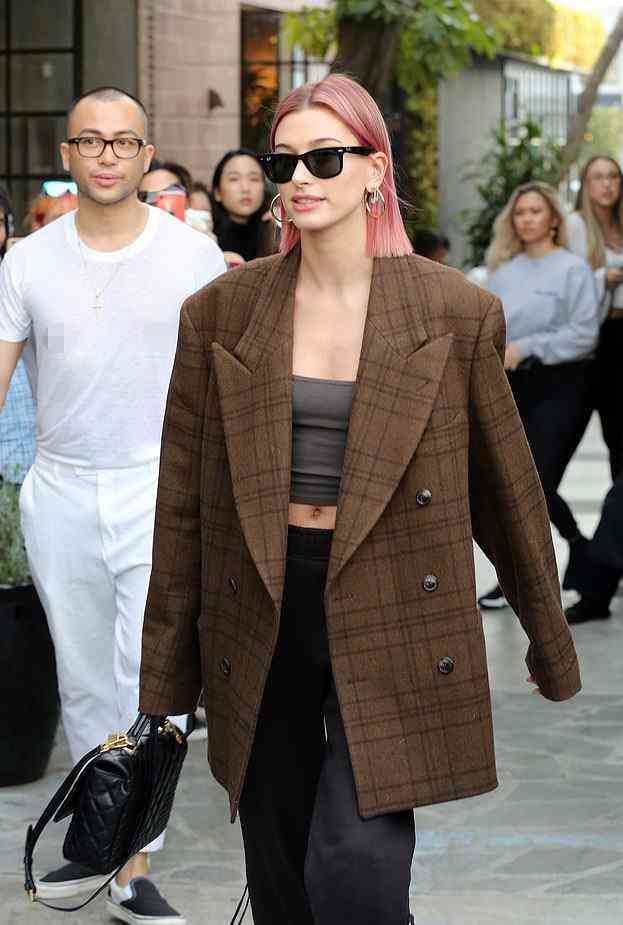 海莉的搭配風(fēng)格也是非常個性,棕色格子外套這樣的百搭單品小編其實(shí)推薦過很多次,但是我們普通人沒有海莉的氣場,就不要像她那樣運(yùn)動鞋配上黃色的襪子了,海莉這樣的中性風(fēng)格的搭配可帥可霸氣,有時候比伯在身邊都沒有她這么有氣場!
