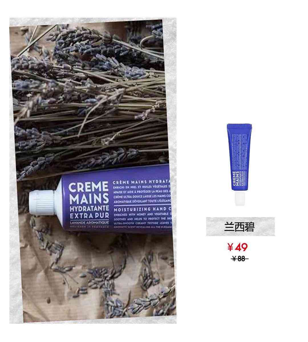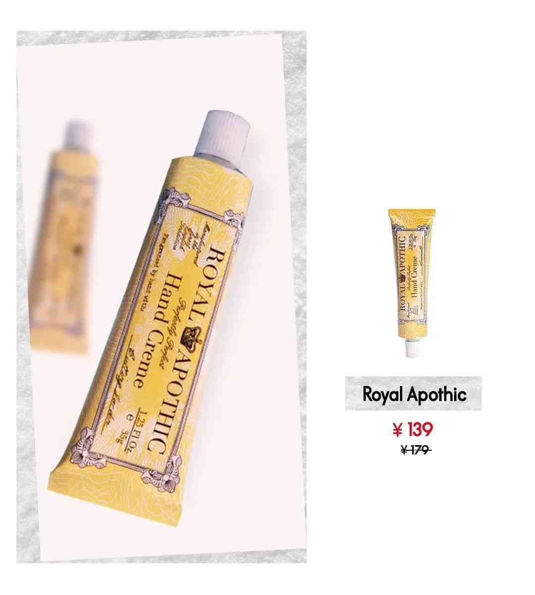 Royal Apothic是很早就將香水概念融入護膚品中的品牌,他們家的護手霜香型有很多種,經典款包括了清新木蘭香的荷蘭公園、梔子鈴蘭香的皇家花園、海風茉莉香的天使之城等,香型的起名和味道都有著別樣的英式浪漫。除了香味出眾之外,護手霜的質地也很不錯,乳液質地一抹即化,吸收完不會有厚重的油膜感,其中添加的高濃度紅花籽油保證了后續(xù)保濕力長時間在線。