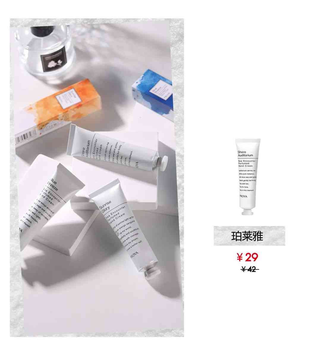 珀萊雅護手霜走的是極簡ins風,外包裝紙盒上是水彩的筆觸,內里的管身是白色的磨砂鋁管包裝,很有冬日氛圍感。一共有三款香型,藍色海風以檸檬和鼠尾草的酸甜香氣為主,花果香混合的海邊禮堂適合大多數(shù)人,柑橘愛好者不能錯過的是海面晨曦。質地偏油潤,所以保濕力度杠杠的,北方地區(qū)干燥程度也完全不用擔心!