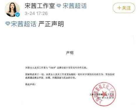 此外,與H&M有合作的藝人黃軒、宋茜等也紛紛表示與H&M解除合作。