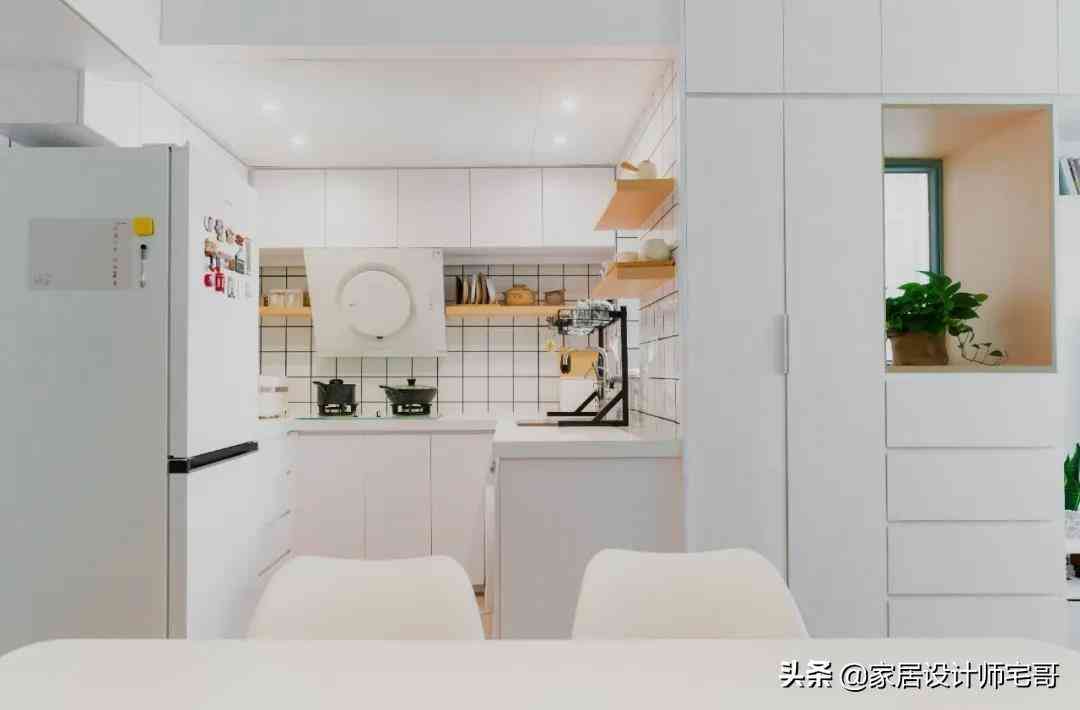 廚房超級干凈又利索,奶白色系加上一點原木色的點綴,滿滿的治愈感。