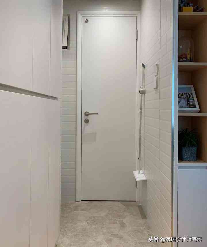 通往衛(wèi)生間的過道墻上還安裝了拖把掛鉤,既節(jié)省空間,又方便使用。