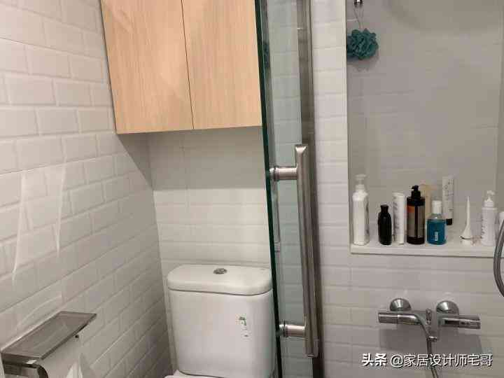 里面淋浴區(qū)和馬桶區(qū),兩個空間之間設計了玻璃隔斷,由于空間面積比較小,所以看起來有一些擁擠,但完全不影響使用。