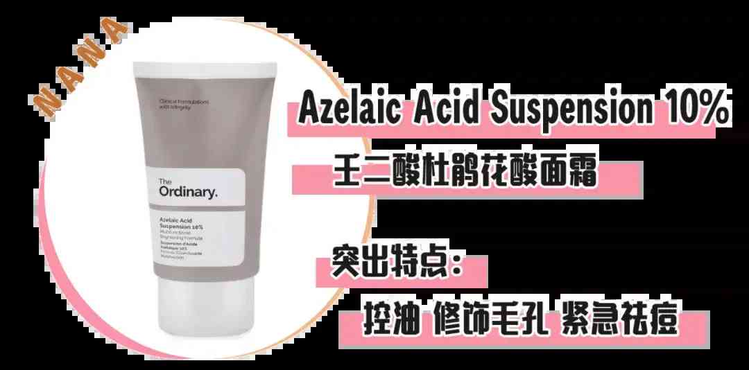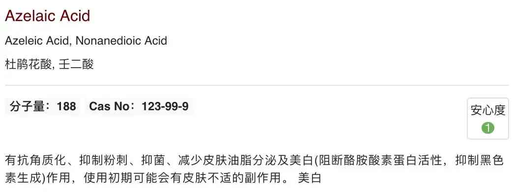 杜鵑花酸,又叫“壬二酸”,相對來說較溫和的弱酸。這個成分是油痘皮超愛的,能殺菌祛痘:抑制皮膚上的痤瘡丙酸桿菌、葡萄球菌的生長;