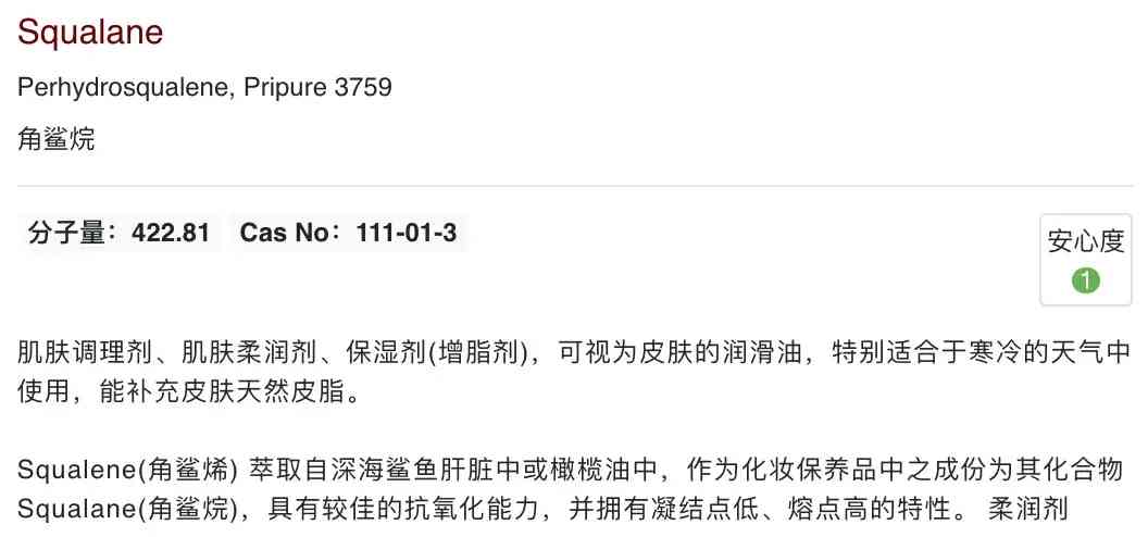 角鯊烷/角鯊烯,就是人體本身就有的成分,所以和皮脂高度相溶,能在皮膚形成保濕潤膚還透氣的保護膜,修復屏障。