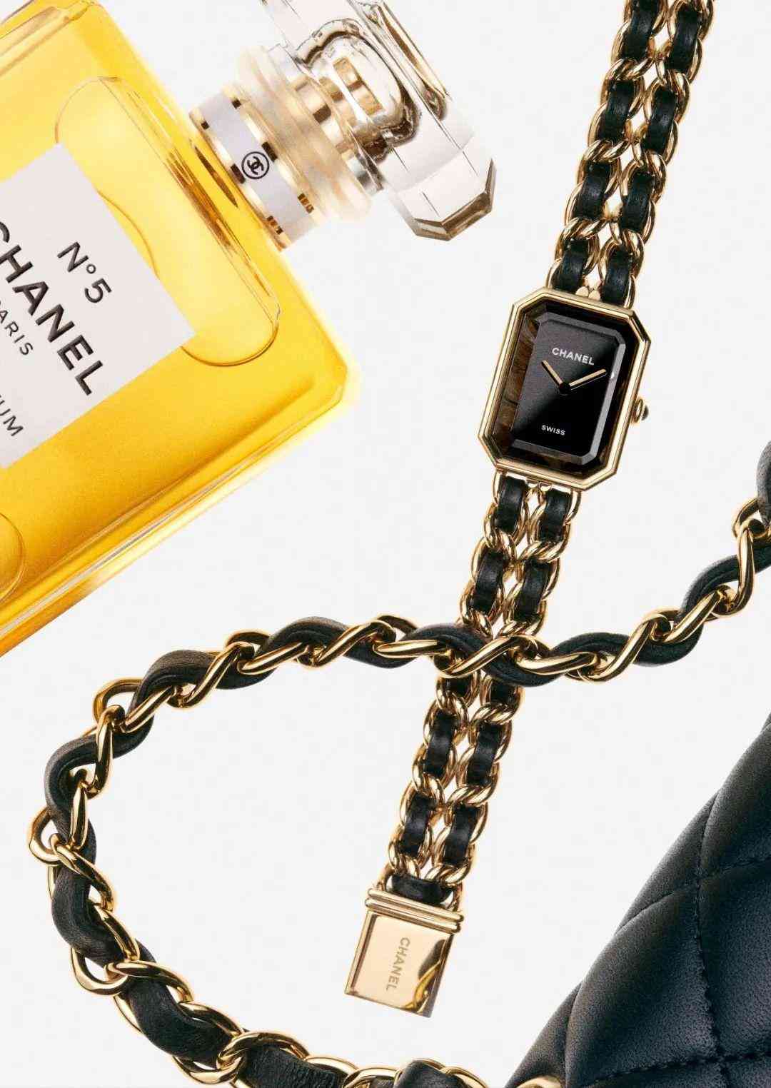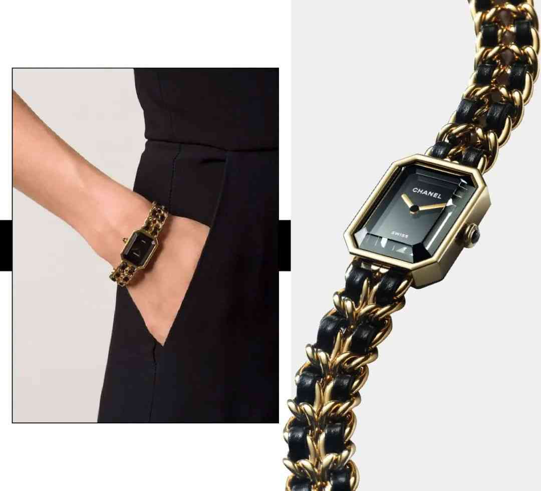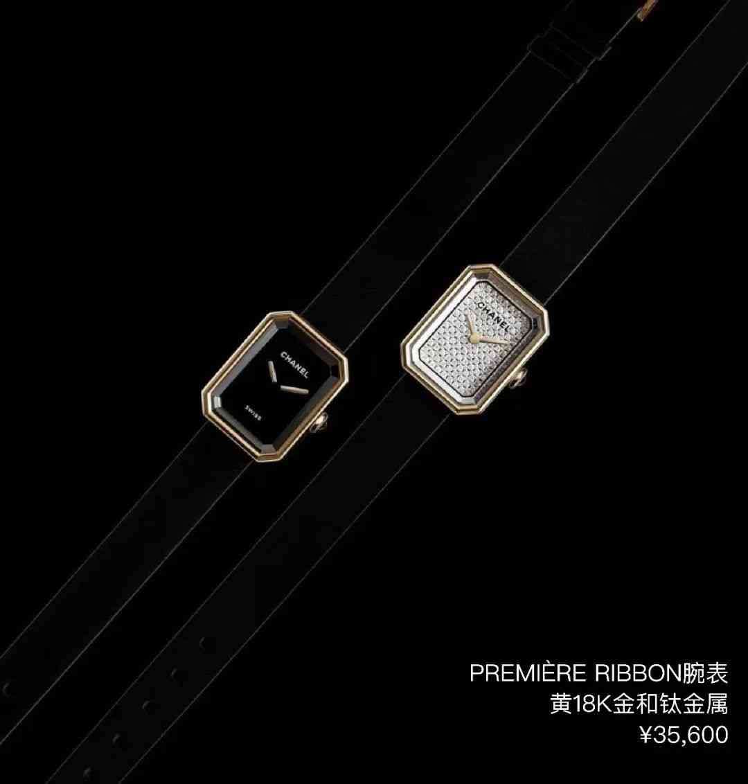 方形表殼靈感取自芳登廣場以及CHANEL N°5香水瓶蓋的八角形,表帶則讓人聯(lián)想起香奈兒包款最具標志性設計之一的皮革穿鏈??梢哉f黑金方糖Première開局就是開得好。