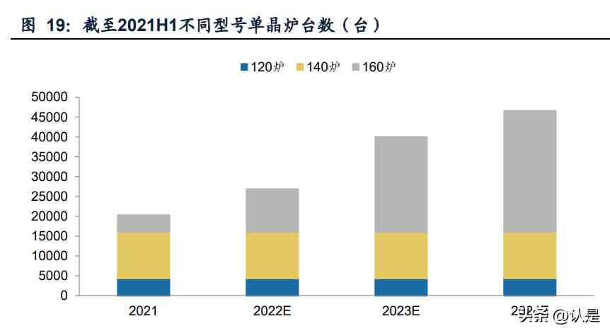 硅片大尺寸化更新迭代,帶來部分落后爐型替換需求。目前主流的爐型主要包括120 型、140型、160型,對應的爐室直徑分別為1200mm、1400mm和1600mm。160型 為目前的爐型,可兼容42寸以下熱場;120型及以下的爐型無法生產(chǎn)210尺寸 大硅片,預計未來將逐漸被淘汰。根據(jù)未來新能源的統(tǒng)計,截止到2021年上半年, 120型單晶爐共4349臺,占存量單晶爐數(shù)量21%。若假設120型爐在23-25年間完成 替換,按照140萬元/臺的價格估算,對應的總需求空間約61億元,年均需求規(guī)模在 20億元左右。