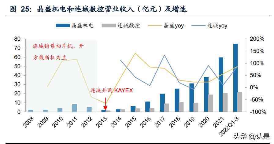 發(fā)展路線不同:晶盛單晶爐起步早、積累深,先發(fā)優(yōu)勢強。連城初期以硅片生產(chǎn)的 后道設備為主,主要銷售硅片開方截斷機等機加設備以及切片機,2008年研制出我 國代具備自主知識產(chǎn)權的多線切割機。不同于晶盛的內(nèi)生發(fā)展路線,連城在單 晶爐領域是通過外延并購起家,2013年通過收購美國KAYEX切入單晶爐市場,并在 2014年實現(xiàn)單晶爐產(chǎn)品的銷售。對比連城,晶盛的特點是在單晶爐領域起步較早、積淀較深,具備較強的先發(fā)優(yōu)勢。