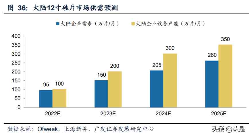 大尺寸硅片供快速增長,帶動設備需求擴容。半導體硅片未來主要增量在大尺寸硅 片,根據(jù)上海新昇的預測,市場預期從2022年至2025年大陸企業(yè)12寸硅片的需求和 供應情況將持續(xù)增長。2022年大陸企業(yè)需求為95萬片,國內(nèi)產(chǎn)能為100萬片。而及 至2024年,國內(nèi)需求為205萬片,國內(nèi)產(chǎn)能將達300萬片。