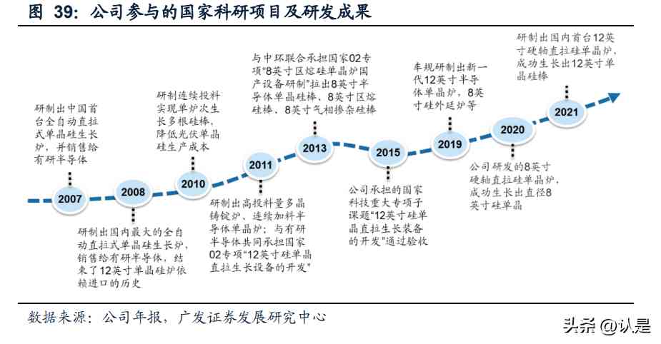 產(chǎn)品發(fā)展復盤:從賣鏟人走向平臺化,進入光伏+半導體雙輪驅(qū)動的發(fā)展階段??v 觀整個發(fā)展歷程,公司成立于2006年,早期從事半導體單晶硅生長設備研發(fā),但光 伏晶體硅生長設備率先起量,并逐步成長為光伏長晶設備龍頭。此后公司在持續(xù)對 光伏設備和半導體設備進行迭代的同時,憑借經(jīng)驗積累先后拓展藍寶石材料、半導 體零部件、輔材耗材、碳化硅業(yè)務,泛半導體領域平臺化布局逐漸形成。