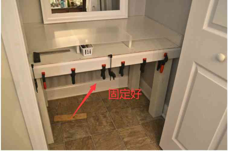 先測(cè)量好柜子表面的距離,然后切割木塊,以便組成一個(gè)框架;將膠合板放在上面,做成一個(gè)開口的四邊形,這個(gè)框架主要是將桌子表面覆蓋住,看著更好看。