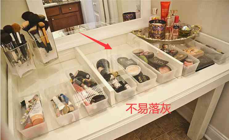 前幾天去我表姐家玩,發(fā)現(xiàn)她的化妝臺(tái)和別人的不一樣,桌面上面架了一塊玻璃板,化妝品全部都放在塑料盒里面,一眼就能看到化妝品放在哪里,一抽一拉特方便,還不容易落灰。想了一下我的化妝臺(tái)真是亂的不成樣子,趕緊向表姐要鏈接下單。