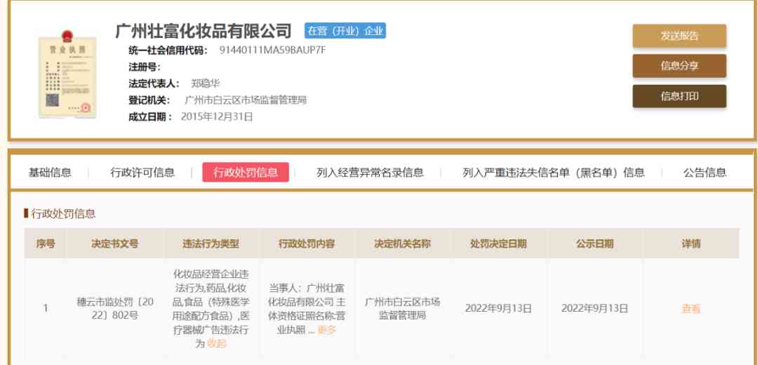近日,廣州壯富化妝品有限公司因違反廣告法和化妝品監(jiān)督管理?xiàng)l例,被廣州市白云區(qū)市場監(jiān)管局罰款21萬元。處罰事由顯示,當(dāng)事人于2021年10月1日起,在未與帶貨主播薇婭(黃某)、李某簽訂產(chǎn)品代言協(xié)議的情況下,擅自在其網(wǎng)店待售化妝品中標(biāo)注“薇婭推薦”“李佳琦推薦”字樣、擅自使用薇婭肖像,且在無任何證據(jù)證明的情況下,在待售產(chǎn)品封面標(biāo)注“當(dāng)天祛斑”的療效描述,構(gòu)成虛假廣告行為。此外,當(dāng)事人在化妝品經(jīng)營過程中,未按要求建立并執(zhí)行化妝品進(jìn)貨查驗(yàn)記錄制度等。