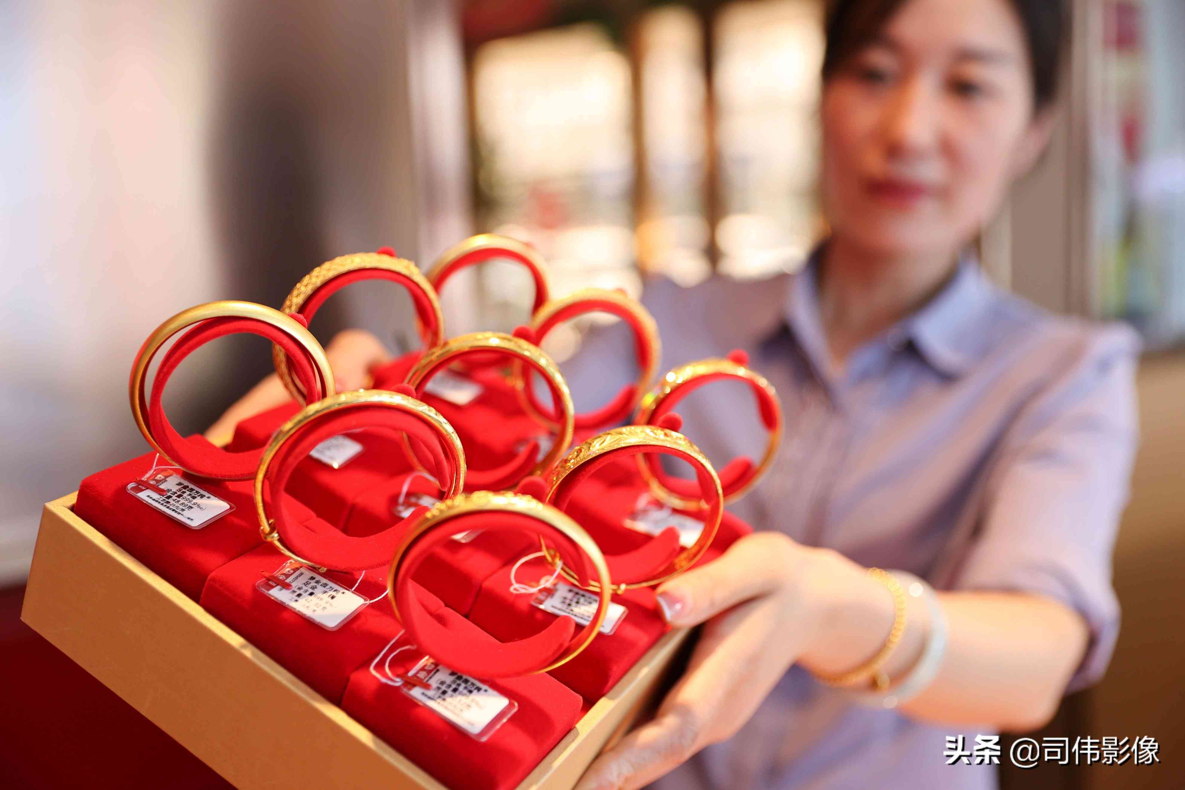 導(dǎo)讀: 2022年7月18日,江蘇省連云港市贛榆區(qū)一家金店工作人員在展示黃金飾品。國(guó)際金價(jià)在今年3月創(chuàng)下了2070.42美元/盎...