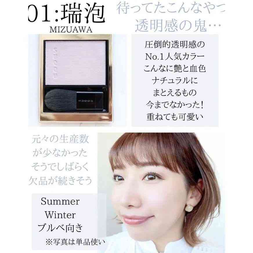 SUQQU這款頰采以腮紅和高光兩個(gè)部門(mén)上榜。采用Melting Powder Formulation新技術(shù),使得頰采雖然是粉狀,卻有著水潤(rùn)感和透明感。