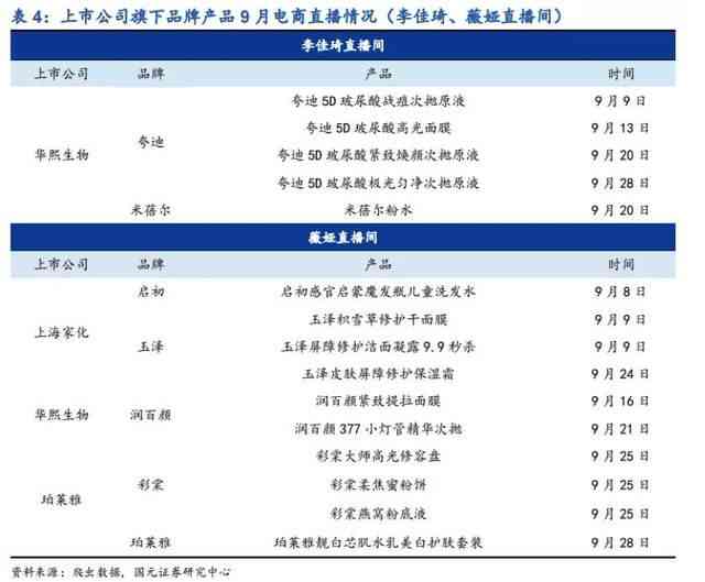 以今年9月為例,華熙生物旗下化妝品品牌夸迪和米蓓爾先后5次出現(xiàn)在網(wǎng)紅李佳琪的直播間里,潤(rùn)百顏則2次出現(xiàn)在薇婭直播間。另珀萊雅和上海家化也攜自家子品牌試水與薇婭合作,目前來(lái)看效果顯著。