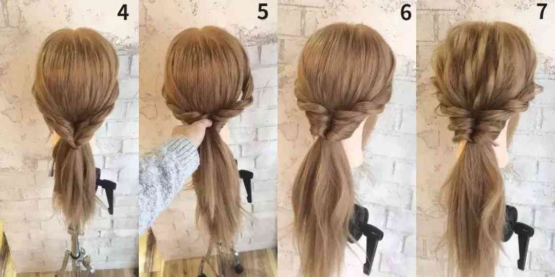 step4&5&6&7:將耳側(cè)旋轉(zhuǎn)成麻花的辮子扎起來(lái),然后塞進(jìn)那個(gè)洞里,就成了圖6的形狀,如果喜歡的話,可以將頭發(fā)弄蓬松弄成圖7的樣子。