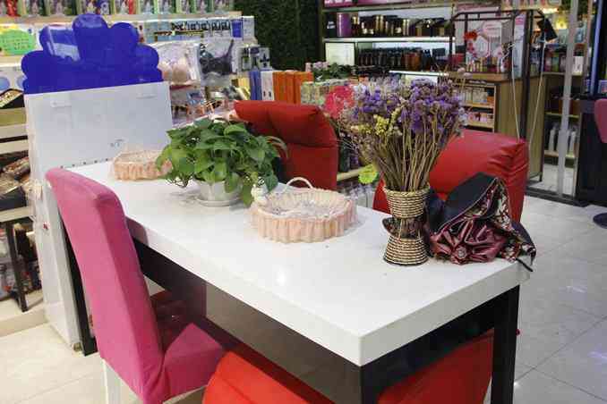 在門店選址上,在shopping mall選址的門店占據(jù)了大多數(shù),在以上的6家門店中,AGE28’s、芙蘭珂、閨蜜與塞勒尼這4家門店均歸于此類。剩下的2家門店嘉麗與霏爾名妝則為街邊店。
