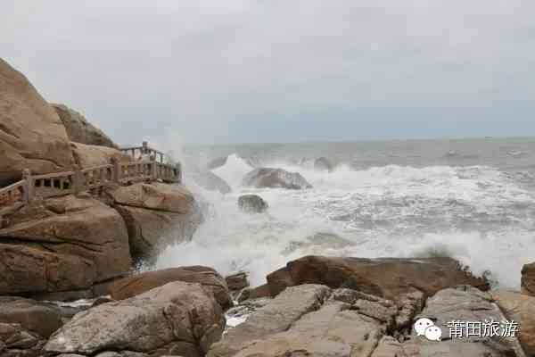 從鵝尾神石園一路往北到九寶瀾黃金沙灘,是賞石、觀瀾、聽濤、沖浪的絕佳去處。九寶瀾沙灘綿延3000米,縱深300~500米,坡度5%,呈波浪狀緩緩斜入大海,灘平坡緩,沙細如面,是天然的海濱浴場和理想的避暑度假休閑寶地,前臨碧波萬頃,后枕綠茵千疇,寬敞平坦,狀如一鉤新月,懸掛在湛藍的大海上。到寶瀾沙灘游覽,最好的時辰是晨昏和月夜,每當明月升起,沙灘一片皓白,海上萬點粼光,此情此景,正如明代秦邦錡《登湄洲山謁天妃圣宮》詩中所描繪的那樣,“月滿瓊波諸島靜,潮來銀屋一帆開”。