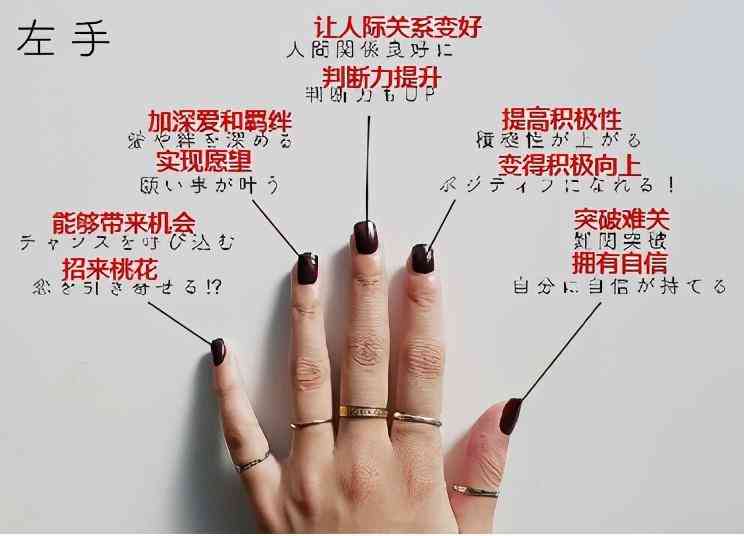右手小指:單身、不想談戀愛右手無名指:正在熱戀中,勿擾右手中指:名花有主右手食指:單身貴族