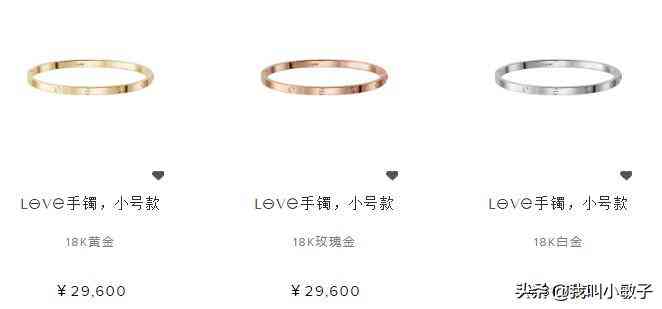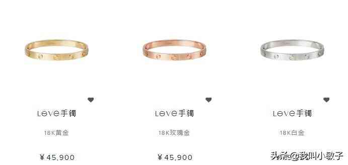 卡地亞的戒指很好看,身邊一些朋友結(jié)婚選的對戒就是他們家的,今天要說的是他們家的手鐲,哇哦,款式和顏色都屬于經(jīng)典,熱款爆款,此款手鐲有寬版窄版以及每個版本都有3個顏色(18K黃金 18K玫瑰金 白金)可以選,選玫瑰金的較多,玫瑰金更耐看些,也要看個人喜好和經(jīng)濟情況啦,價格從3W到5W左右,還有一個加鉆石版本,鉆石的多少也決定了價格的高低,鋪鑲鉆石要296,000元哦。