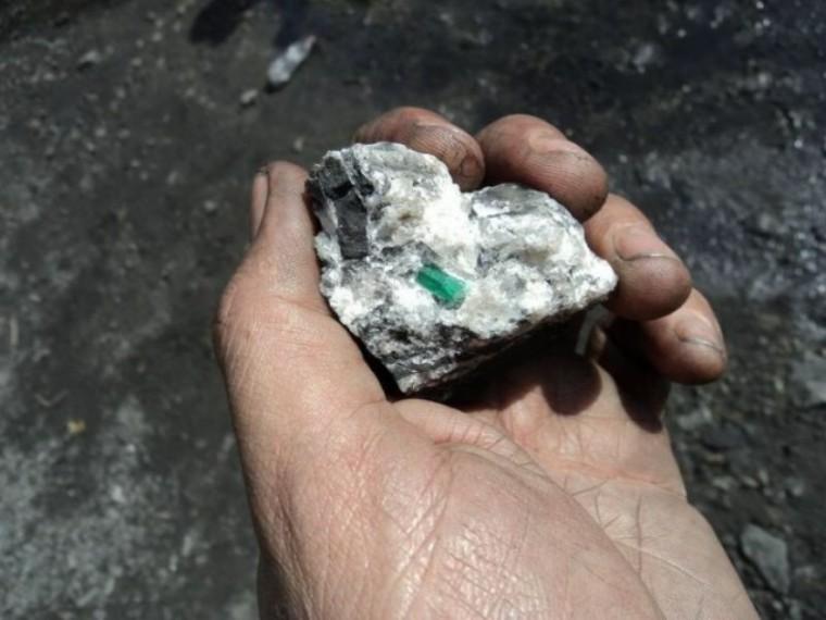 木佐礦區(qū)剛剛開采出的祖母綠礦石母巖