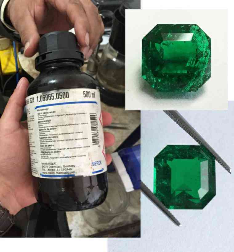 祖母綠無色油瓶及祖母綠(中-重度注油)前后對比