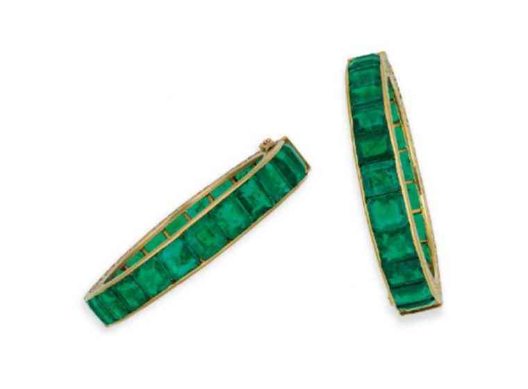 哥倫比亞祖母綠手鐲一對,附SSEF證書,鑲金,約1900年製,手鐲內(nèi)周長16.2厘米