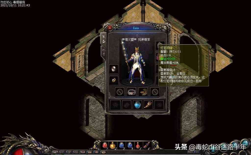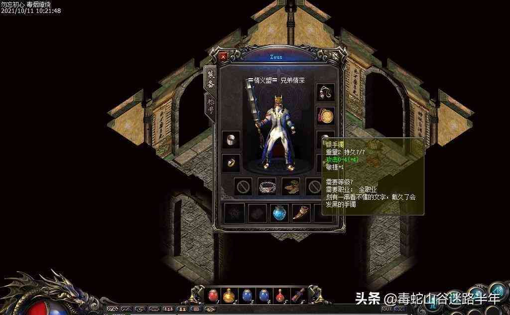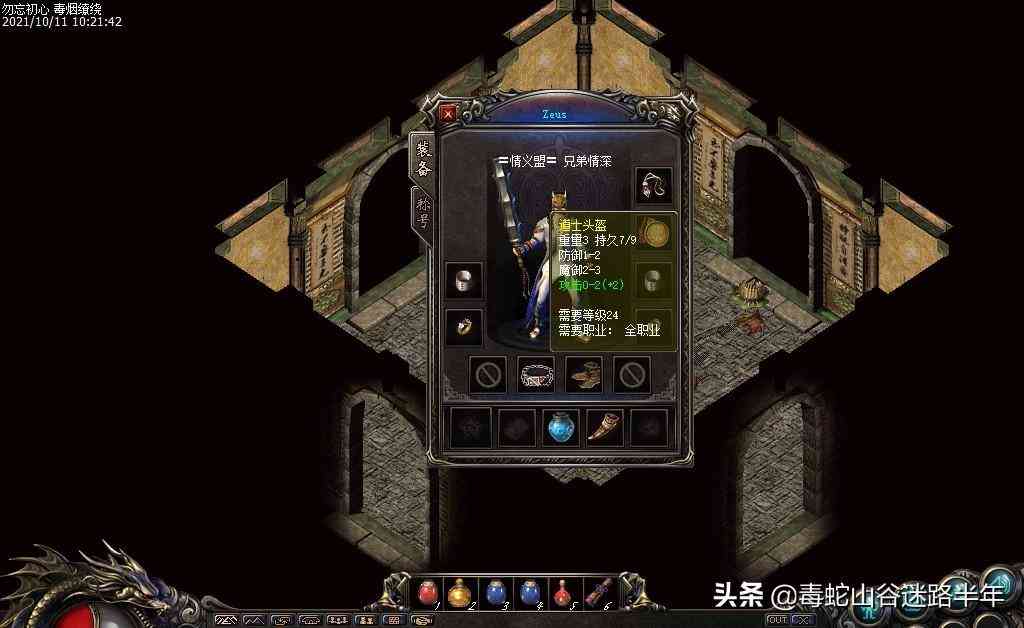 攻擊0-2、持久9,將就用吧,反正也是掛機(jī)裝。并不是人人都有水若寒那種攻5的,老蛇今天特意去看了一下拍賣行的價(jià)格,攻4的道士頭盔,價(jià)值1個(gè)多!