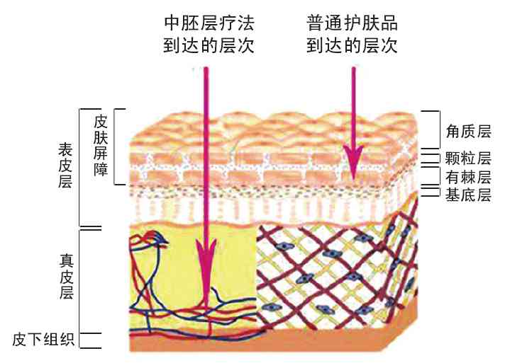 皮膚主要?jiǎng)澐譃槿龑?,表皮層、真皮層、皮下組織。在皮膚美容領(lǐng)域又有所細(xì)分,皮膚的中胚層位于表皮層與真皮層之間,而微針能夠讓營養(yǎng)成分直接到達(dá)中胚層。從這一角度來看,微針不僅能促進(jìn)成分吸收,還能產(chǎn)生機(jī)械性物理刺激,誘導(dǎo)皮膚開啟自我修護(hù)機(jī)制,加速表皮新陳代謝,釋放多種生長因子,促進(jìn)膠原蛋白、彈性蛋白的產(chǎn)生。因此,微針療法又屬于中胚層療法的一種。