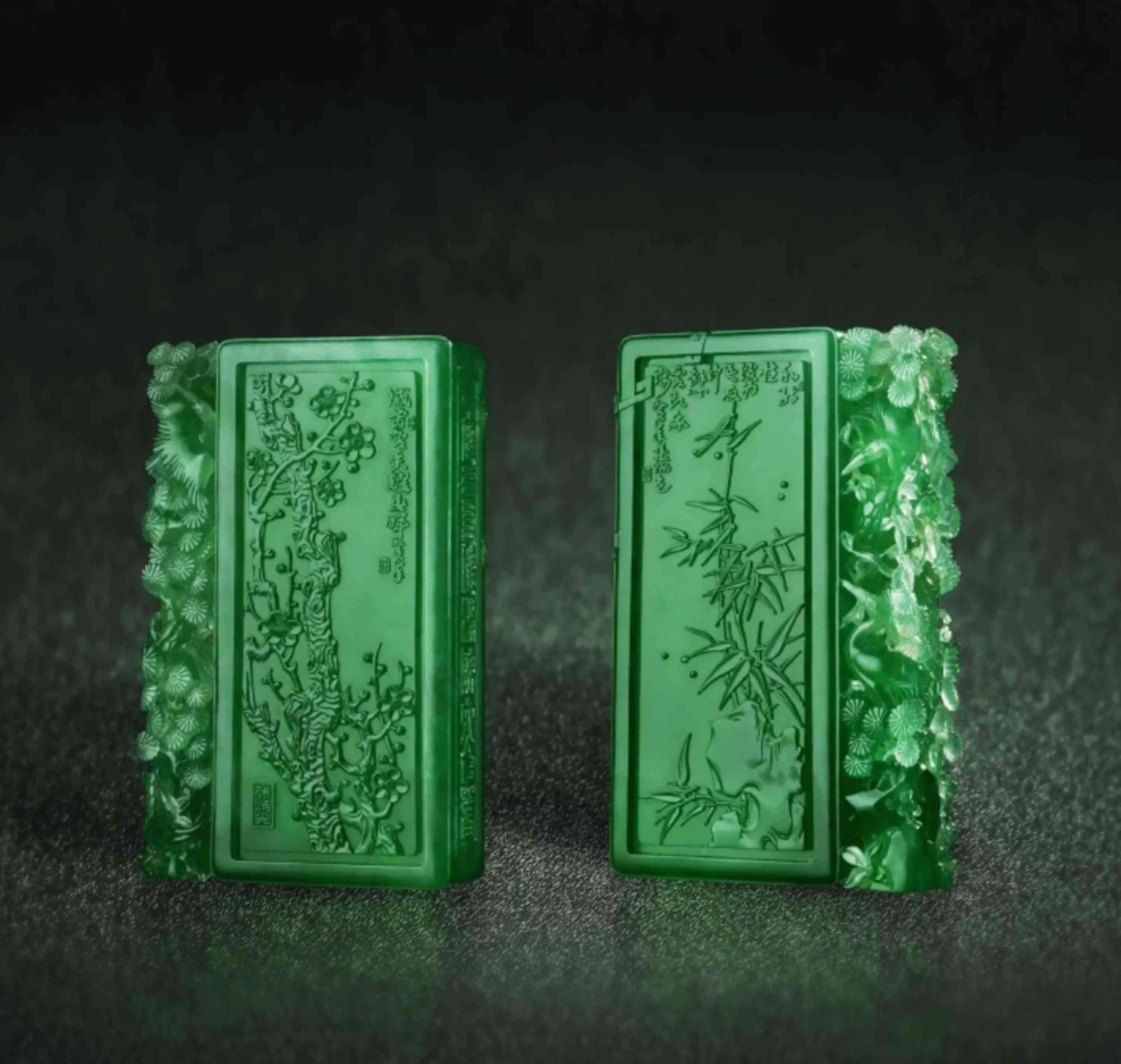 張大師用買來的大玉王毛料,雕刻出了形象逼真的歲寒三友—松、竹、梅,以及由鹿和鶴組成的六合,寓意天下大同、六六大順。