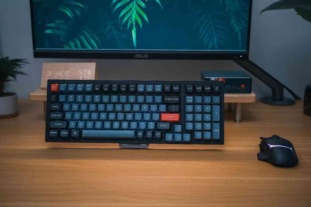 Keychron K4Pro鍵盤采用了98配列,全鍵無沖設(shè)計,一脈相承的OSA高度雙色注塑工藝鍵帽,鍵帽材質(zhì)PBT含量大于40%,長時間使用不易打油,硫酸手和汗手都可以放心入。