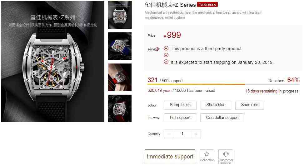 近日,中國(guó)制造商小米發(fā)布了一款用于眾籌的新型機(jī)械手表。眾籌款小米CIGA機(jī)械表售價(jià)999元(145美元),這是小米貨架上的第三代CIGA機(jī)械表。小米CIGA機(jī)械表是第三方產(chǎn)品。由深圳昊嘉創(chuàng)新有限公司提供,該公司同時(shí)負(fù)責(zé)售后服務(wù)。預(yù)計(jì)將于2019年1月20日開(kāi)始出貨。