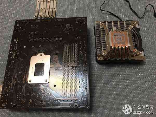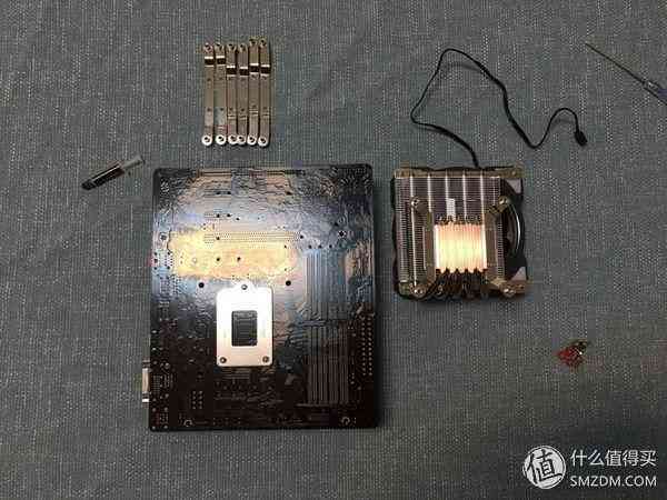 這個IS-50對Intel的CPU安裝方法也是奇葩,要在背后扭上4顆螺絲,那么就只有翻過來壓了,將硅脂涂到散熱器上,主板反壓過來后,再上螺絲