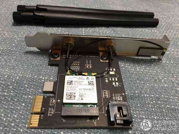 下面是一個小配件,關(guān)于臺式機的 Wi-Fi 解決方案之一:PCI-E轉(zhuǎn)接卡 + Intel網(wǎng)卡。臺式機要連 Wi-Fi 還可以直接插USB網(wǎng)卡,但是我試過感覺信號不穩(wěn)定而且速度慢,再一用迅雷之類的軟件下載東西馬上斷,也可能是因為我用的USB網(wǎng)卡比較老。PCI-E的方案成本稍微高點,我用的聯(lián)想筆記本拆機 AC18260(淘寶買的AC18265換下來的),以及淘寶買的18260專用Wigig天線 Antenna-M10042RRW